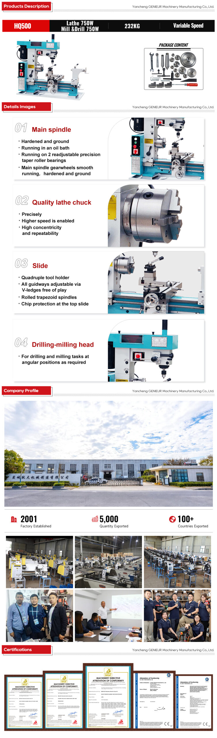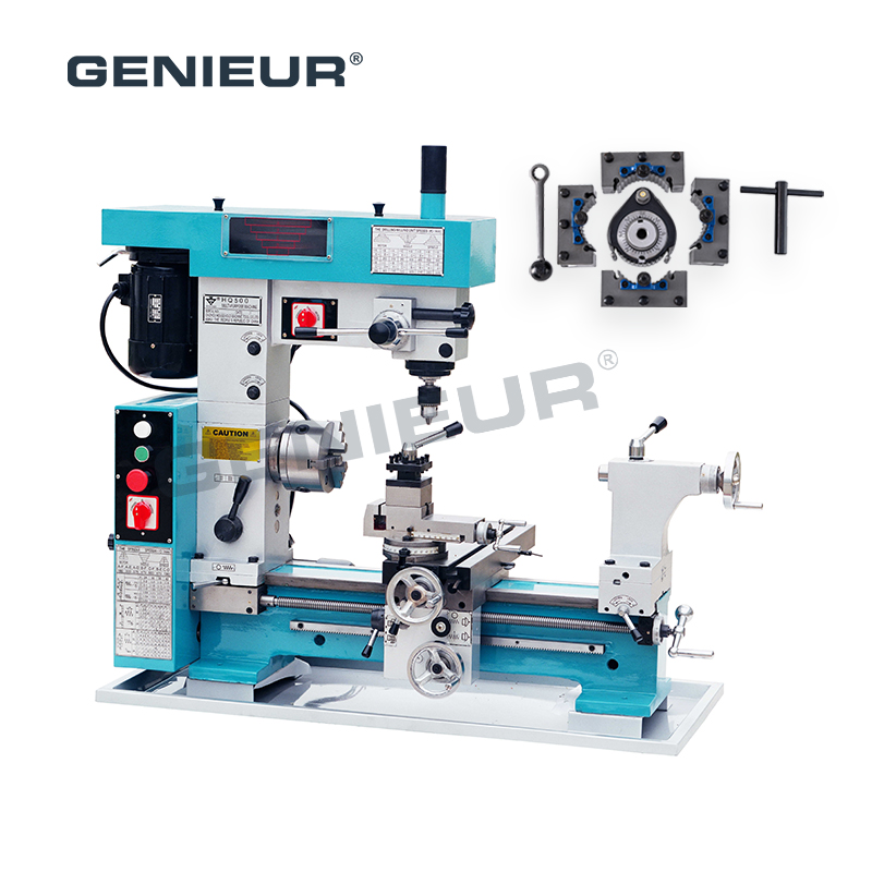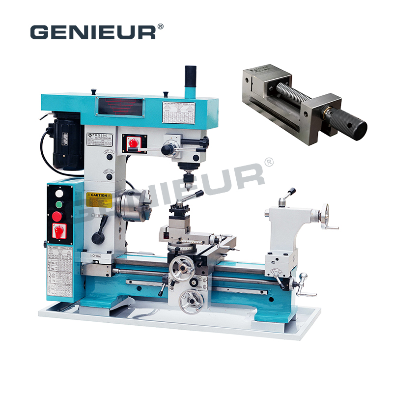 Boasting a 360° swiveling milling head and 22mm maximum drilling capacity, HQ500 enables one-clamp multi-process machining, boosting efficiency for workshops. 138mm width of bed 420mm turning diameter MT4 lathe spindle taper combo lathe milling machine for turning and milling blends durability, versatility and precision, making it a top choice for small-batch production, parts repair and technical education.