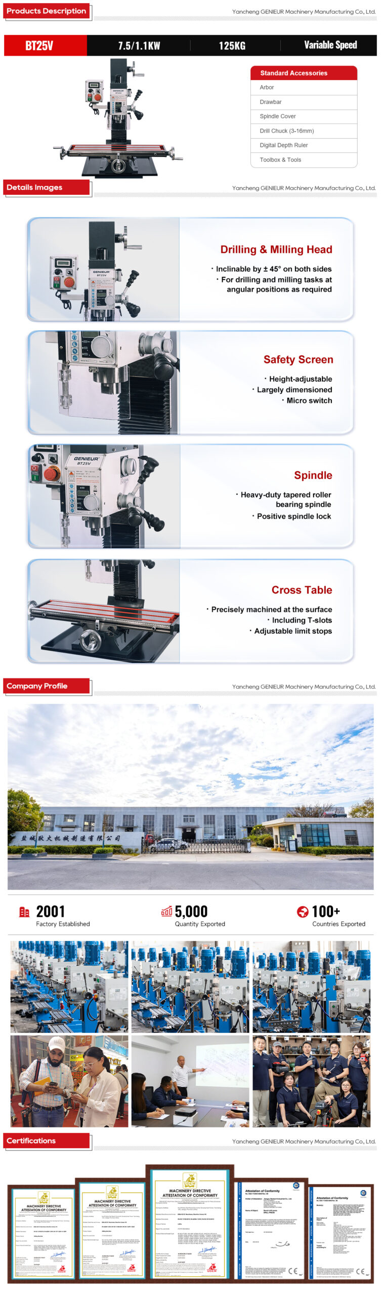 For small factories seeking efficiency, precision and versatility in one compact machine, 25mm max. drilling capacity MT3 spindle taper variable speed drilling and milling machine for small factory is your good choice. Designed specifically to fit the limited space of small-scale workshops while delivering industrial-grade performance, this BT25V model redefines what small factories can achieve.