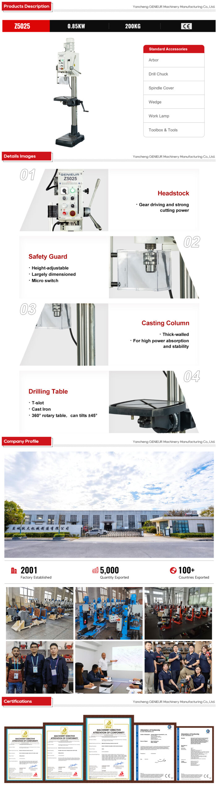 Engineered for durability, the Z5025 variant adopts anti-rust casting and precision-machined components, adapting to harsh factory environments and reducing maintenance costs for international users. Its user-friendly design simplifies operation, while the vertical structure saves floor space, ideal for large-scale and small-batch factory production alike. 28mm max. drilling capacity MT3 spindle taper 200kg vertical drilling machine for factory metalworking balances power and accuracy, supporting consistent output for metal processing projects.