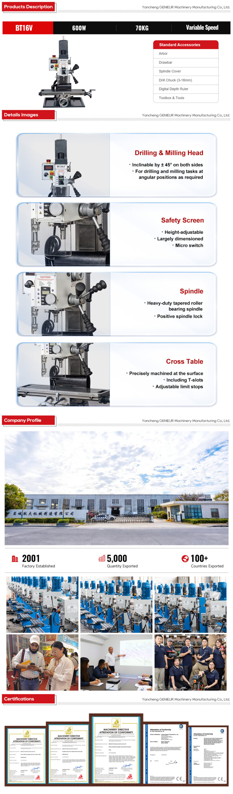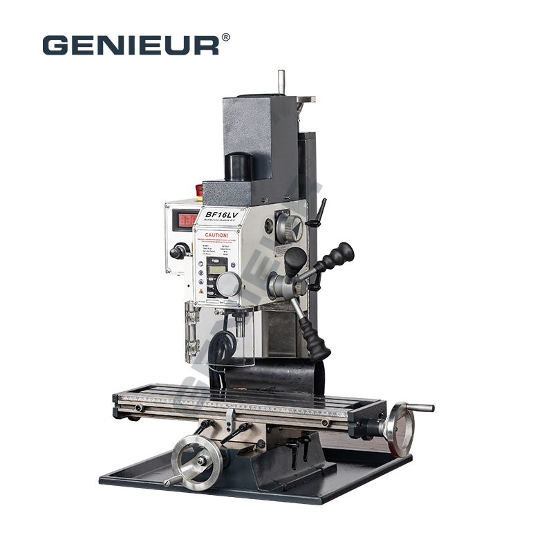 300mm max. x-axis travel 16mm end milling capacity 50mm face milling capacity drilling milling machine for metalworking, known as BT16V, is a compact yet high-performance solution tailored for metalworking tasks. Designed to meet the diverse needs of small-to-medium workshops, this machine blends flexibility and stability, making it ideal for global metalworking professionals seeking reliable machining results.