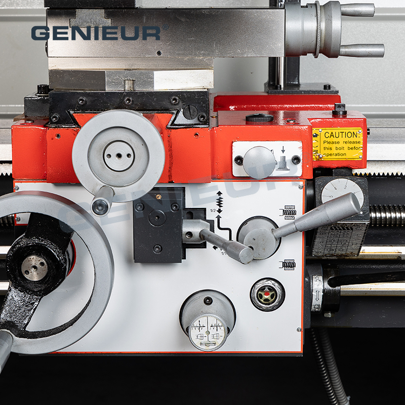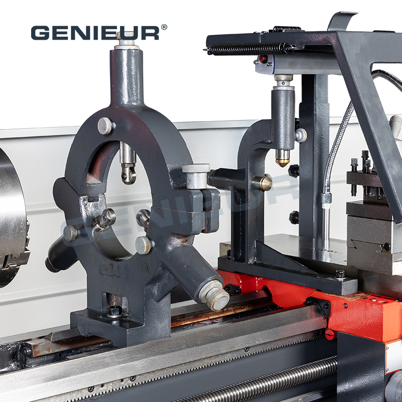 Versatile enough to serve industries ranging from automotive part manufacturing to general mechanical processing, 410mm 52mm spindle bore manual lathe machine with saddle for disc parts processing excels in turning, threading, and facing operations. Its compact footprint optimizes factory floor space utilization, while the integrated coolant system guarantees efficient heat dissipation during high-speed machining, preserving workpiece integrity and tool life.