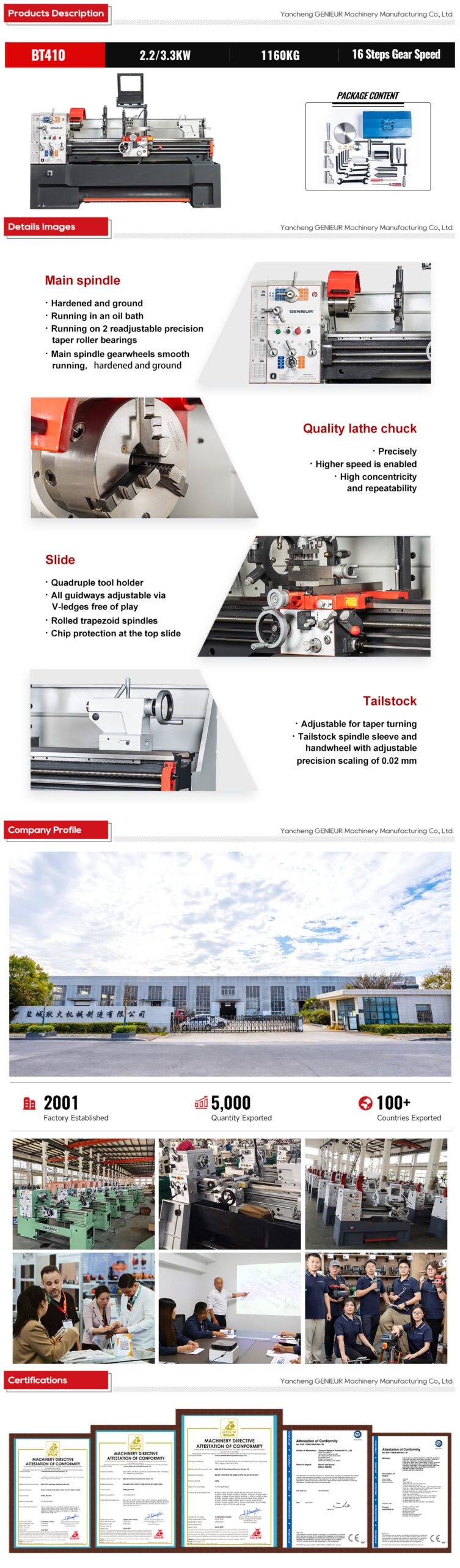 Backed by rigorous pre-delivery cutting tests, 410mm 52mm spindle bore manual lathe machine with saddle for disc parts processing stands as a high-precision, durable solution tailored to meet the relentless demands of modern factory production.