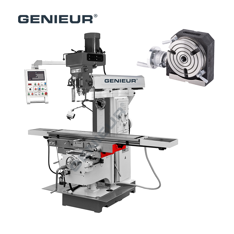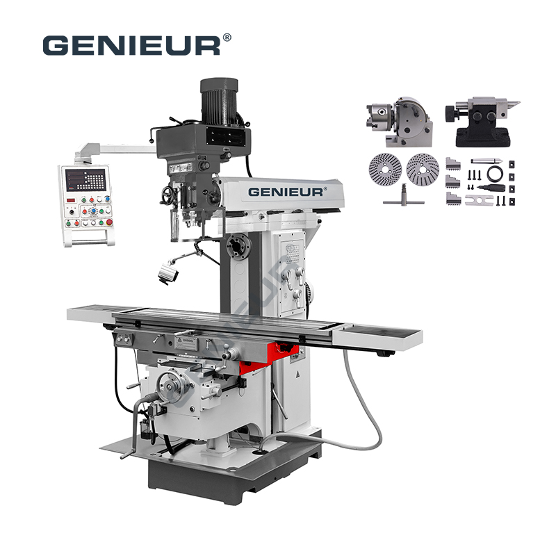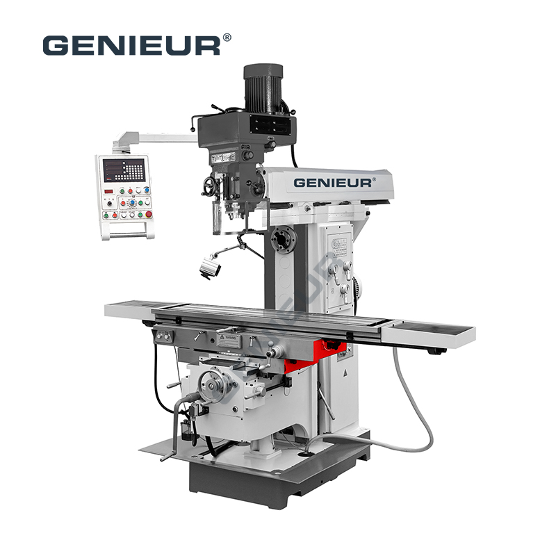 45° head swivel 3 T-Slot 660mm max. distance from spindle nose to column universal milling machine for workshop use is a versatile workhorse tailored for small-to-medium workshop operations. Its 45° left/right head swivel design enables angled machining without repositioning workpieces, drastically boosting efficiency for bevel cutting and inclined plane processing.