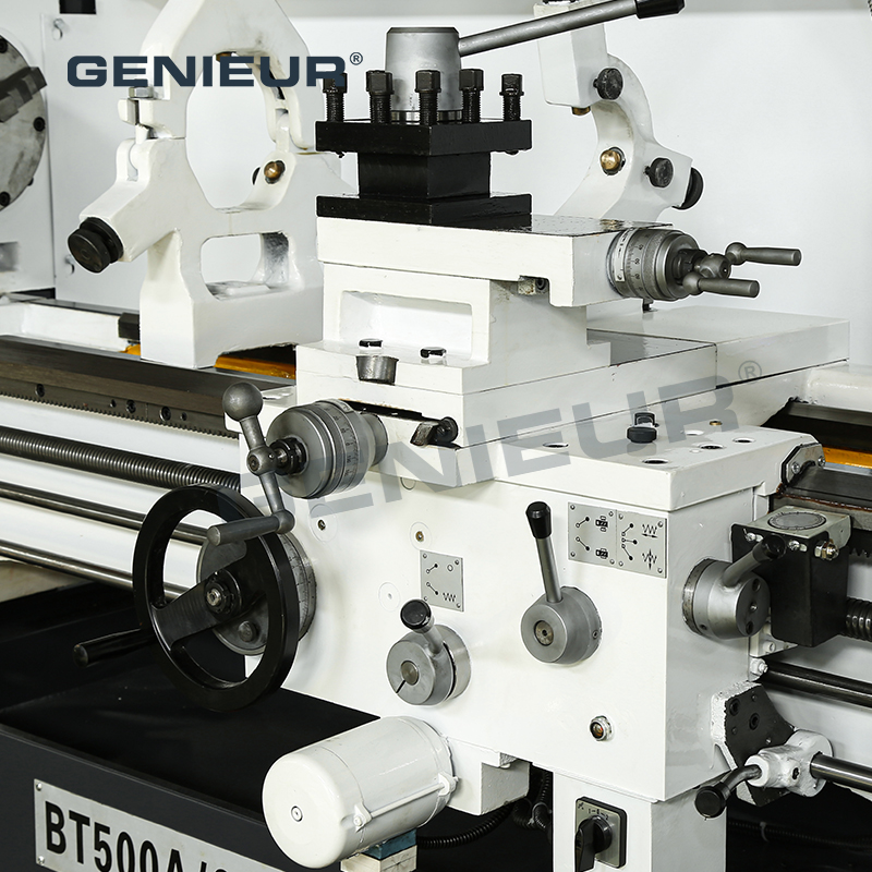 Its robust foot brake system ensures instant, smooth stopping, enhancing operational safety and reducing workpiece damage risks during quick adjustments. Designed for flexible production, 9-Step speed 52mm/82mm spindle bore lathe with foot brake for multi – variety parts production minimizes changeover time between part types, a game-changer for small-batch, multi-variety workflows. Elevate your manufacturing line with the BT500A lathe that merges safety, adaptability, and durability—perfect for modern precision machining needs.