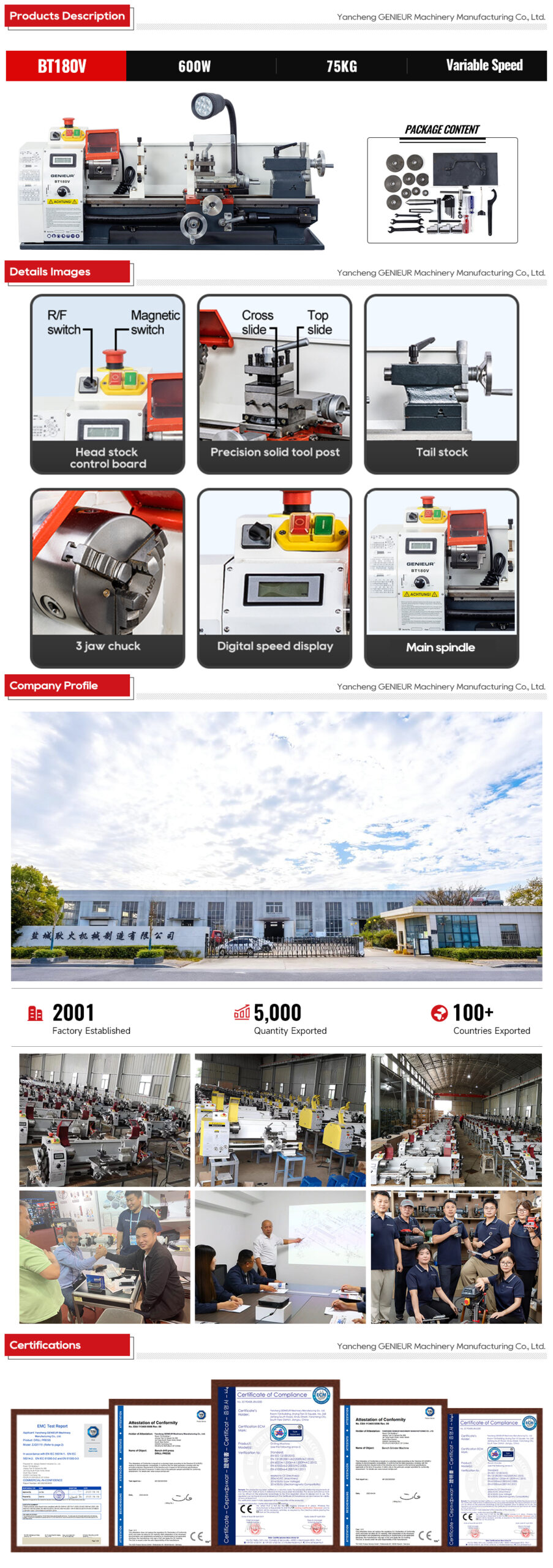 Whether in home workshops, model making studios or small batch production lines, BT180V 600w small lathe for home use stands out with its upgraded performance. It inherits the compact and lightweight advantages of the BT180 series while breaking through limitations, making it the preferred choice for machining enthusiasts.