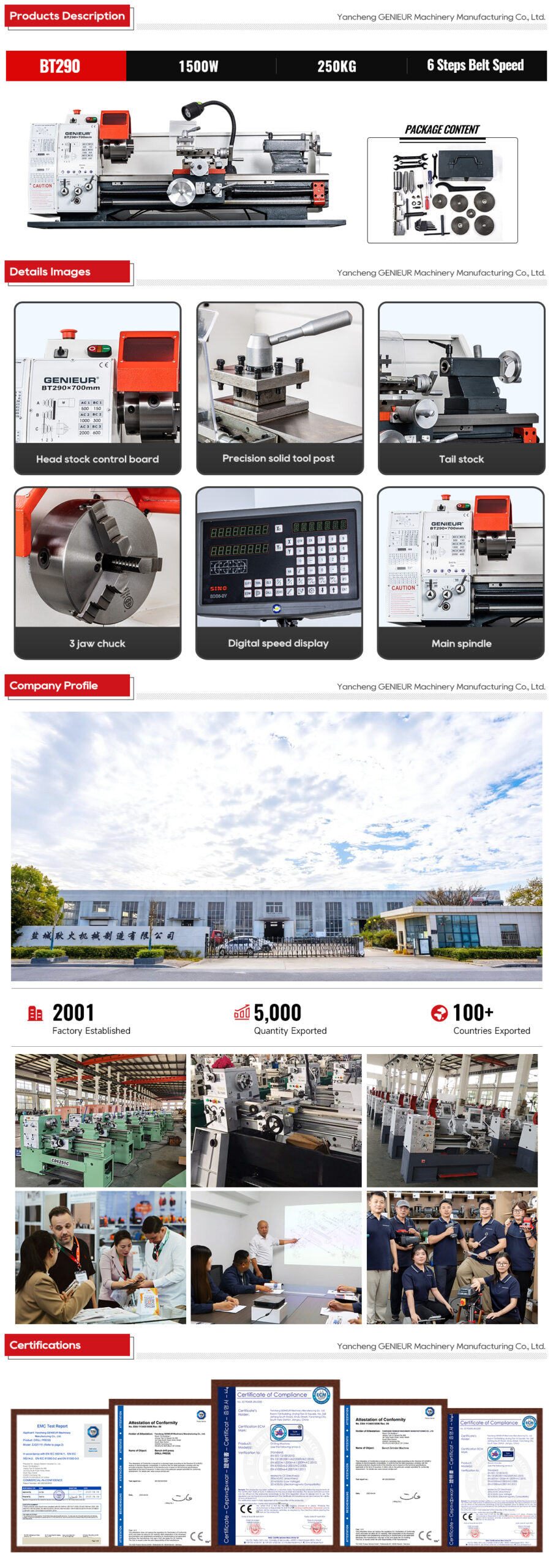 BT290 manual lathe versatile metal turning machine adopts 1.5KW motor, ensuring long-term structural stability and reducing maintenance frequency and costs. Combining reliable machining accuracy with competitive acquisition and running costs, BT290 manual lathe versatile metal turning machine delivers exceptional value for money in daily turning tasks.