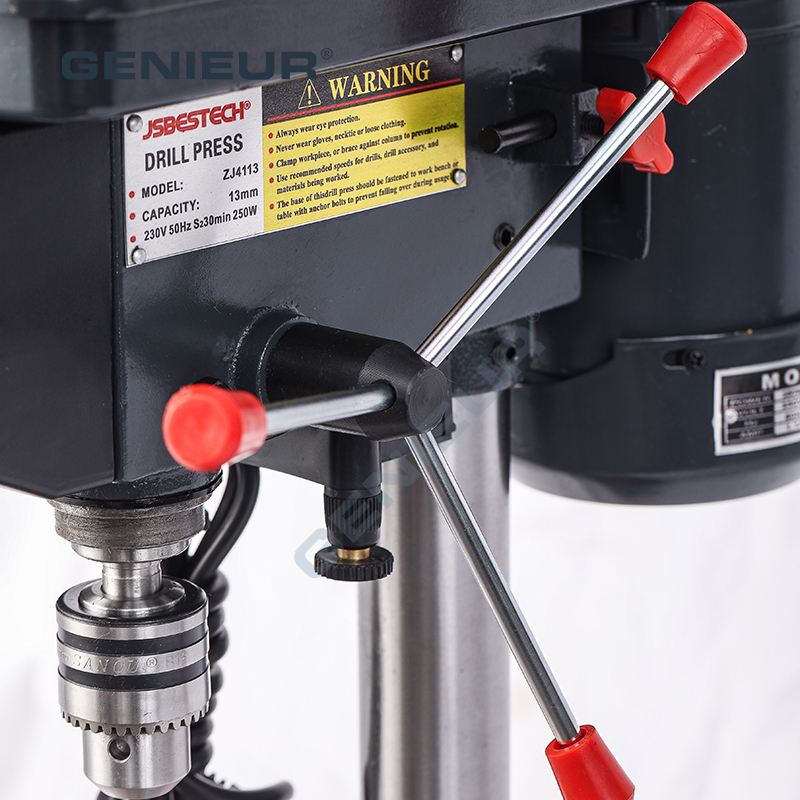 The ZJ4113 is an user-friendly drill press designed for reliability and convenience. At the heart of its design is the 13mm max. drilling diameter 1.5-13mm chuck capacity 16kg portable drill press for home use, which combines compact structure with strong drilling performance to meet all your daily processing needs. Whether you are working with wood, plastic, or thin metal, this machine delivers stable and accurate results every time.
