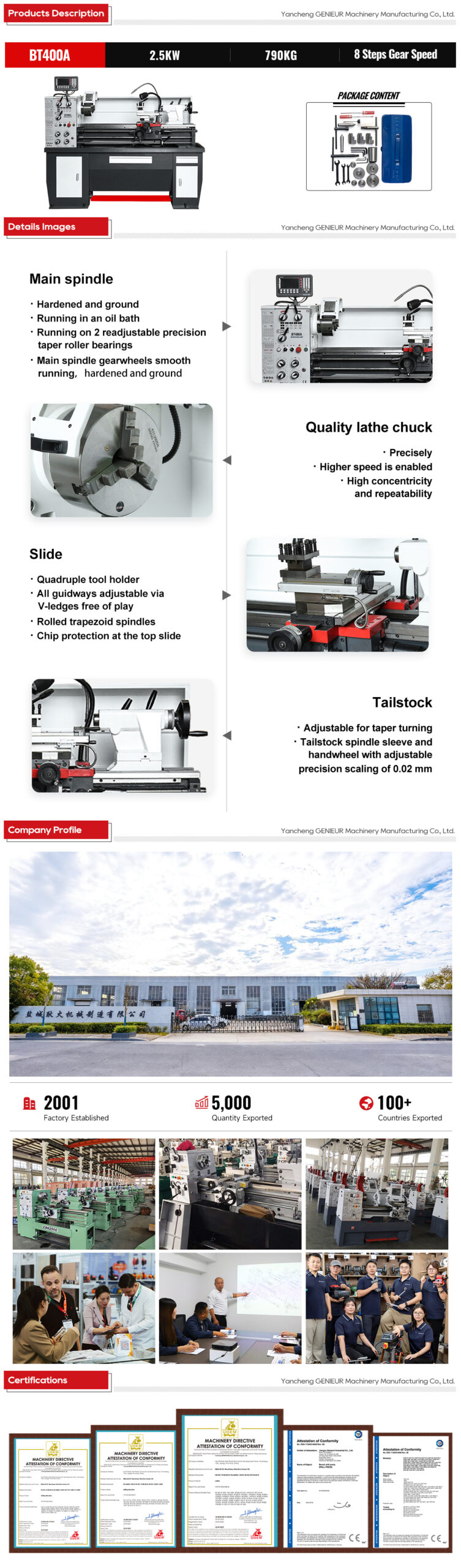 At the core of 8-Step 70~2000RPM 1000mm center distance metal lathe machine for factory use performance lies its meticulously calibrated 8-step speed mechanism, which allows operators to seamlessly switch between optimal rotational speeds for different materials—from low-speed heavy cutting of alloy steels to high-speed finishing of aluminum components. This speed range, combined with a maximum turning diameter of 400mm, empowers 8-Step 70~2000RPM 1000mm center distance metal lathe machine for factory use to handle workpieces of varying sizes and hardness with consistent accuracy, a critical advantage for batch production in factory settings.
