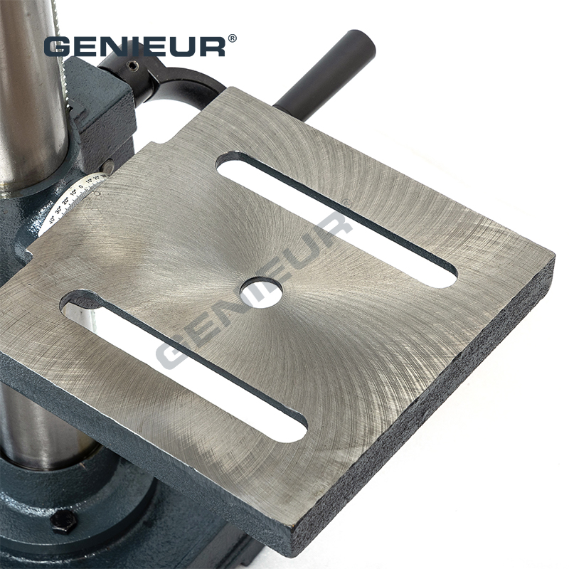 Featuring a B16 spindle taper, this bench drill ensures secure, stable drill bit installation, minimizing runout and delivering clean, burr-free holes—an essential advantage of B16 spindle taper 195x196mm worktable size 1-16mm chuck capacity bench drill for mini parts drilling. Its 195x196mm worktable provides ample, stable space for clamping small workpieces, while the adjustable table height and tilt function enhance operational flexibility.